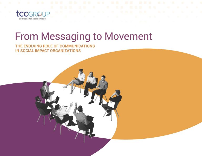TCC Group partners with funders and nonprofits to drive meaningful social impact, no matter the complexity of their missions. We immerse ourselves in your issue areas, applying our expertise in initiative design, trust-based grantmaking, innovative evaluation, and strategic communications. Our mixed-methods approach spans the entire project lifecycle, from initial strategy and design to implementation, dissemination and evaluation- as you can see below in our strategic communications resources.